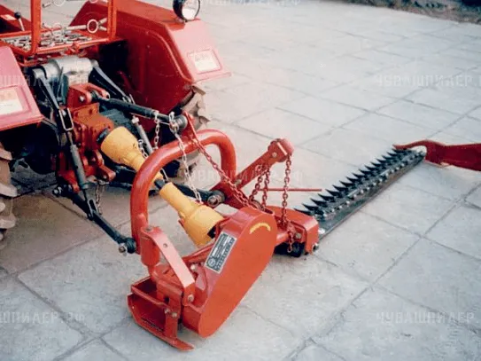 Косилка агрегатируется с колесными тракторами мощностью от 35 л.с., имеющими как задний, так и боковой вал отбора мощности. Стальные пальцы снабжены насеченными вкладышами. Режущий аппарат скользит по почве на наружном и внутреннем башмаках. Под башмаками расположены стальные полозки для установки режущего аппарата на требуемую высоту среза и для подъема его при работе на комковатой или каменистой почве. К наружному башмаку шарнирно прикреплена отводная доска, отгребающая срезанную траву в левую сторону. Режущий аппарат присоединен к раме косилки тяговой штангой, которая позволяет наклонять пальцевой брус в перед или назад. С помощью гидравлического цилиндра можно производить подъем или опускание режущего аппарата в момент необходимости, так же цилиндр удерживает режущий аппарат в рабочем положении. Режущий аппарат приводится в действие карданной передачей от ВОМа трактора при помощи шкива-эксцентрика и клиноременной передачи и вала с ведущим шкивом.